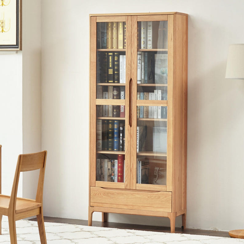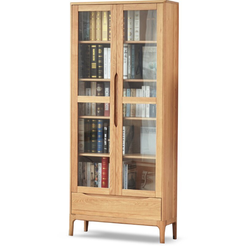 我们可以在书房里放上这样一张书柜,玻璃的柜门,平时防水防尘,还能方便我们找的时候一眼就能看到书本的位置。