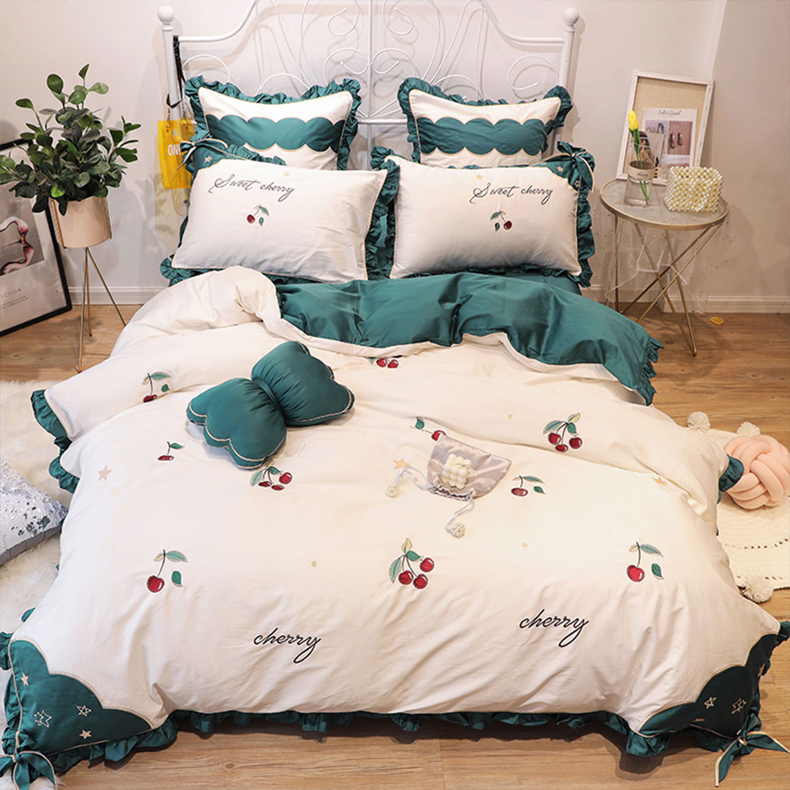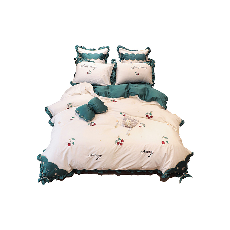 精致可爱的小樱桃,代表着甜蜜的爱情,白色和墨绿色的色彩搭配,让人眼前一亮,面料尽显奢华质感,细腻柔软,光泽度加倍。