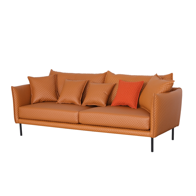 进口伊朗抹茶绿色地毯搭配橘色皮质沙发,混搭碰撞但是不会纷乱,这种进口的伊朗地毯无论搭配什么风格的家具都会很有特点。