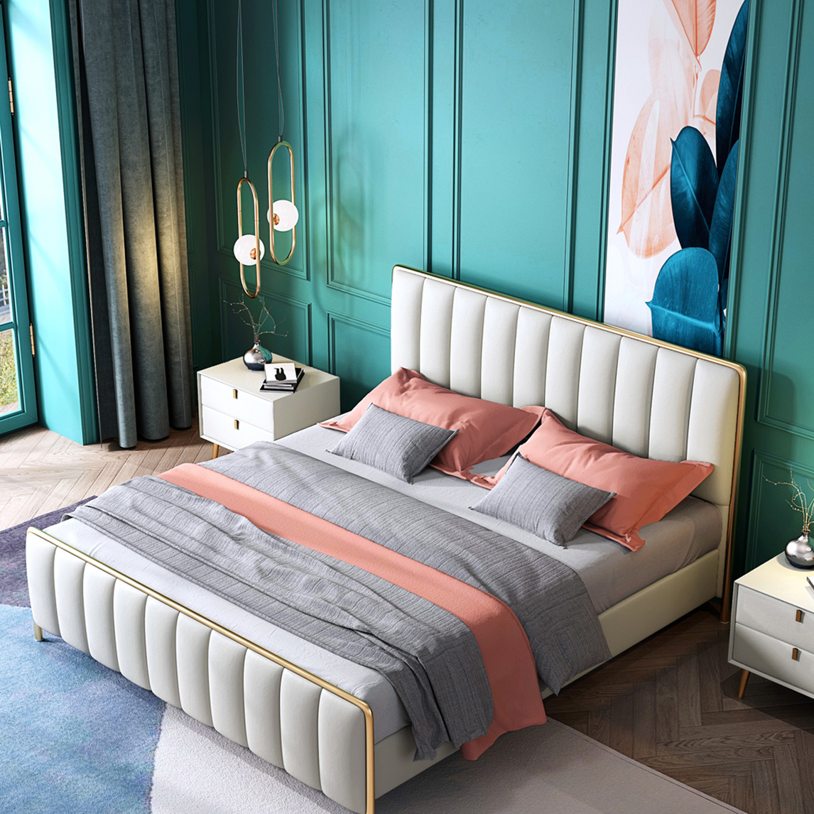 看这里如何打造一个现代轻奢风的卧室? 拥有一张好床非常重要,轻奢感足足的真皮美式床,加上镀金的边框是不是很有高品质轻奢感,加上卧室的墙面可以根据自己的喜欢来选,个性的金属色吊灯让卧室更显高端,也许这就...展开