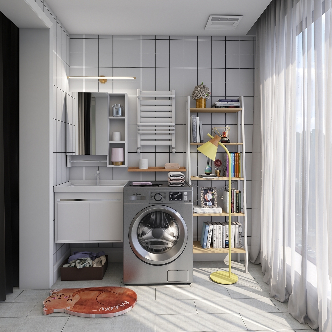 阳台作为房子,也需要很多的巧思。精巧的洗台旁一台多功能的洗衣机会成为孩子他妈的好帮手,简单实用的置物架方便放下各种清洁用品的同时可以作为花架和饰物架,成为装饰的一部分。电热毛巾架和暖风机给你和家人无限...展开