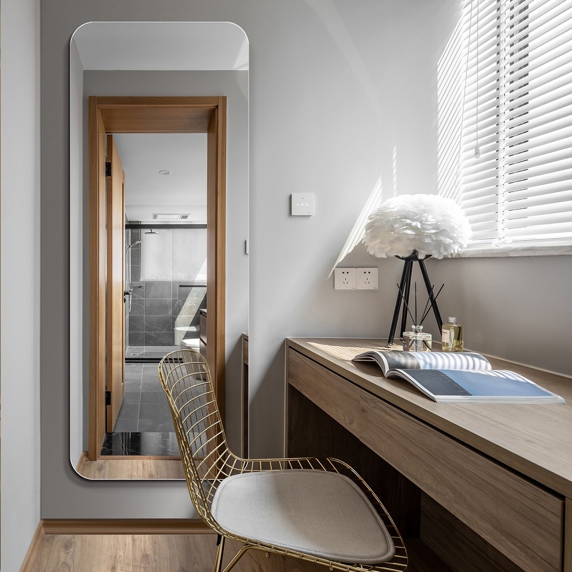 就算是再小的房子也要隔断出一件书房给自己,铁艺的金属椅子带着ins风的感觉,十分的潮流,网红羽毛台灯颜值超高的,再配上一面穿衣镜,可以在空间上扩展了整个视野