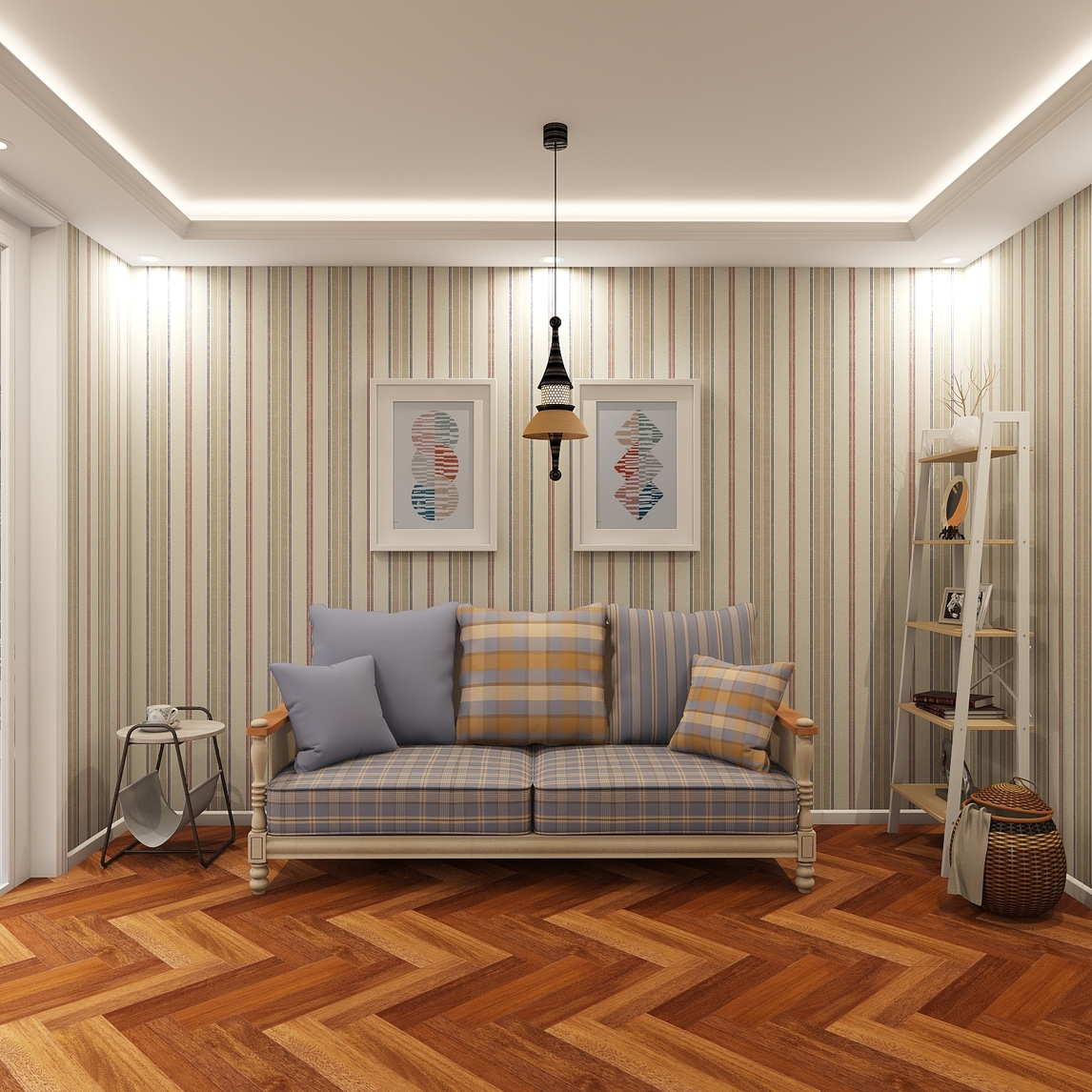 以地中海风格打造的休闲室有着条纹图案的墙面,搭配上两幅抽象装饰画的点缀,为其增添了更多时尚艺术韵味,其次加入了一款格纹布艺沙发,融入罗马柱的元素更显优雅大方美感,再加上木纹地板的陪衬,为这地中海风情的...展开