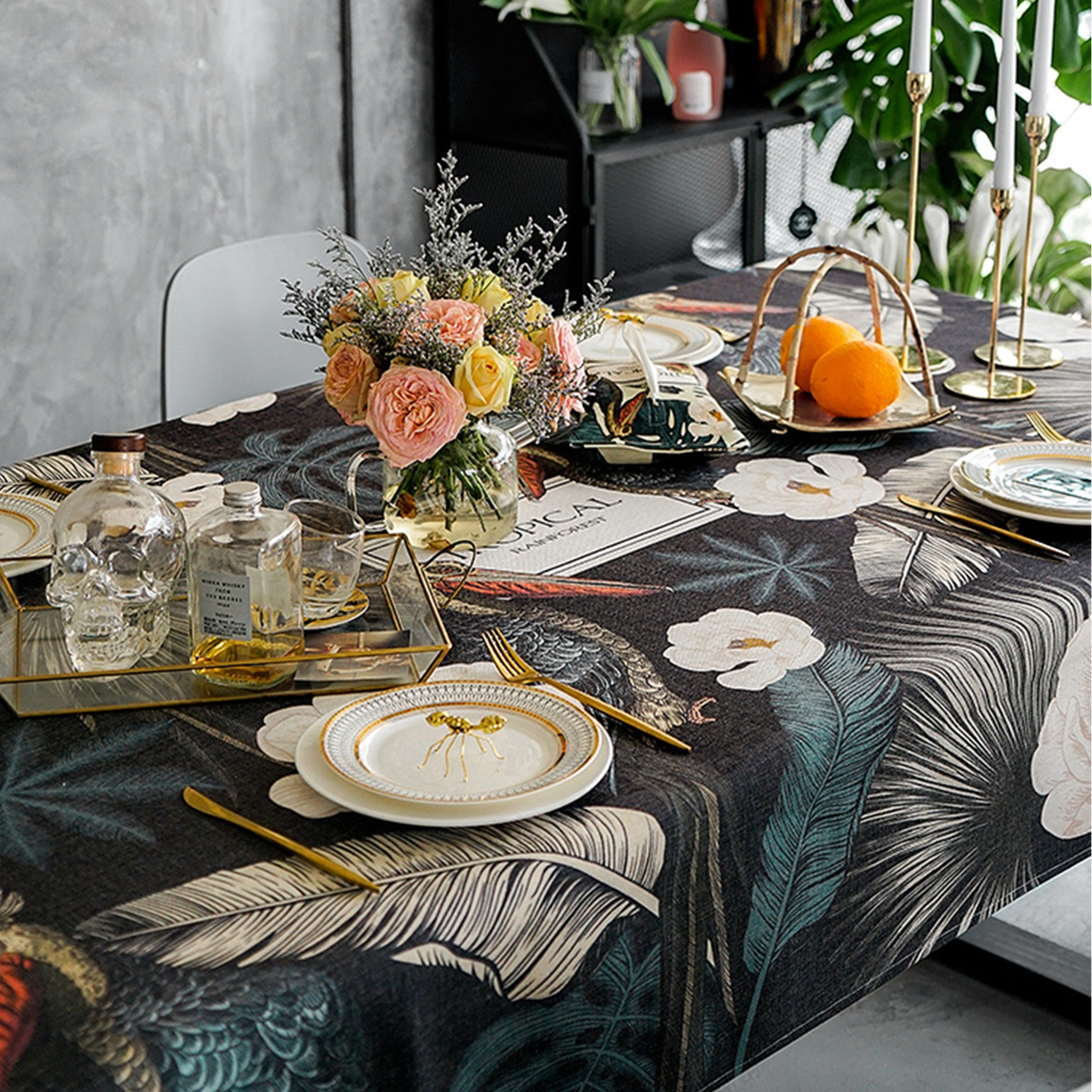 热带植物印花餐桌布,让餐厅有种花草丛生的感觉,带来清新的气息。只有精致的碗碟才配得上精致的美食,摆上金色的烛台,制造浪漫的烛光晚餐吧。
