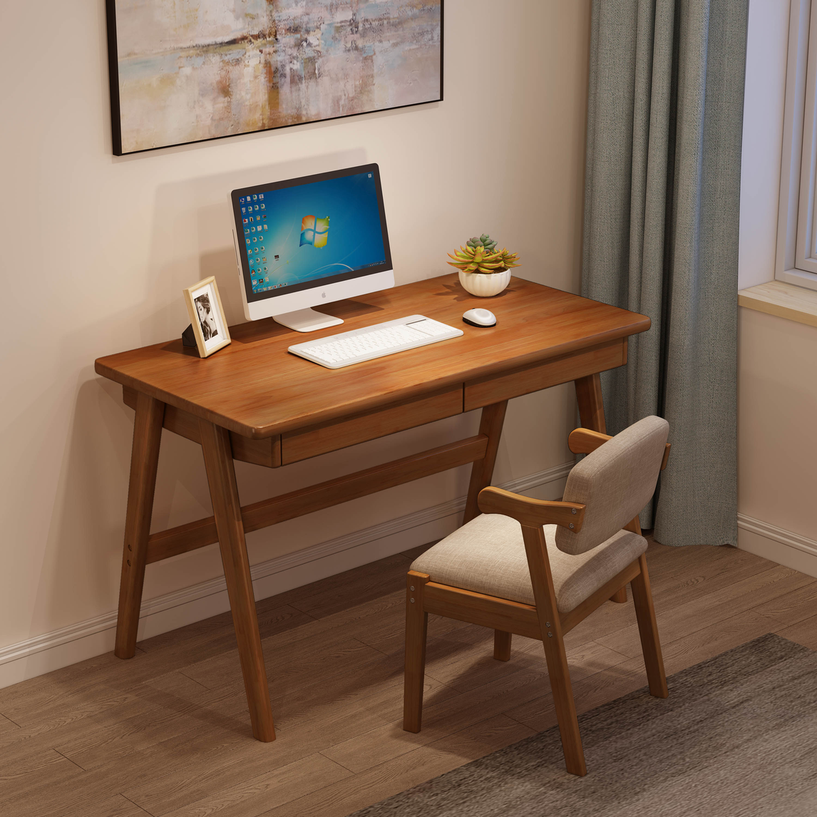 现代简约风格的小书房,装的也是很时尚大气,地面铺的是原木质的地板,靠墙窗边摆上小书桌也不失书房的优雅与大气。