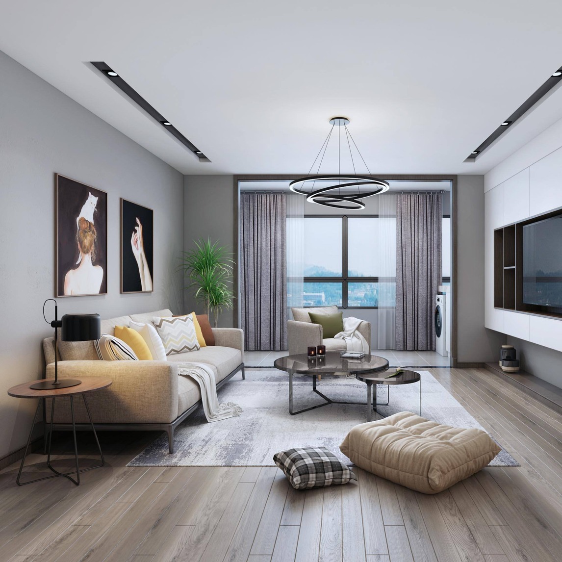 清新的实木原木地板,带来大自然的清爽感受。整体的浅灰色彩搭配,让空间更有时尚感,更加的干净利落。个性的圆形吊灯搭配,时尚感满满。在这样的家居中,自在更舒适。