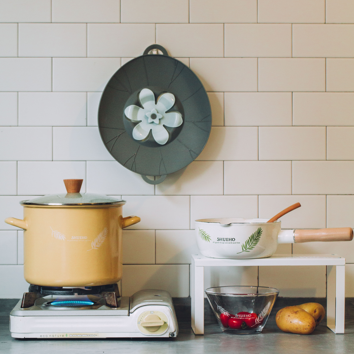 将调味罐、杯子和碗统一收纳到木柜中,又换了一个清新的黄色羽叶汤锅,没想到之前脏乱的厨房,一下子变得明亮整洁起来了,搭配小巧的陶瓷花瓶,文艺感爆棚,果然漂亮的人都需要一个文艺风厨房呀~