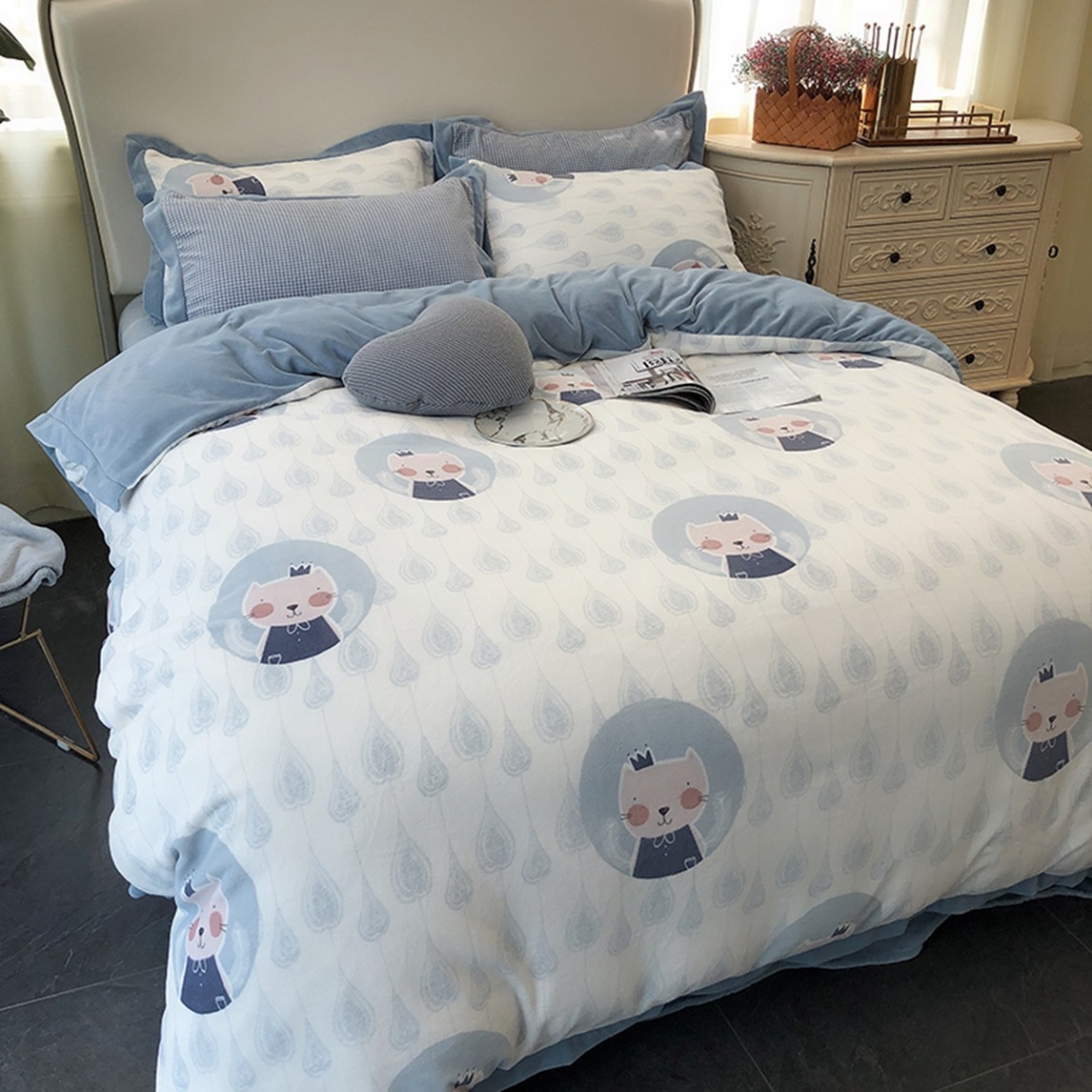 卡通风加厚保暖牛奶绒四件套,可爱猫咪印花图案设计,给居室增添了趣味性。采用亲肤牛奶绒面料,保暖性佳。