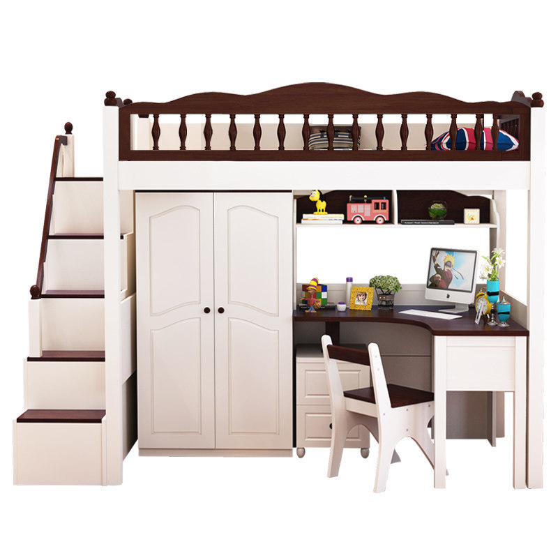 家里修装个小美式风格,儿童格也要有点小美式的感觉。因儿童房小而不好摆放家具,咋办?下面的这种多功能组合床总你有喜欢的,床,书桌,衣柜。椅子。梯柜。全部配齐。即功能齐全,又省空间,这样的设计就是绝了!