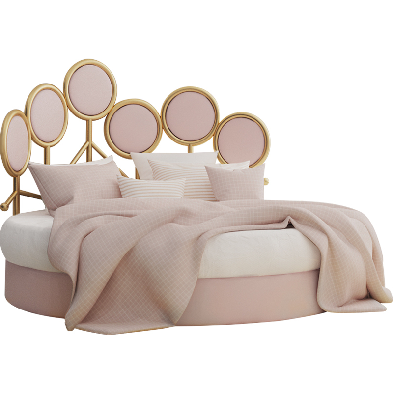女生的卧室怎么能没有一点粉色呢,这款床的设计很个性,结合了金粉两种颜色,很奢华又很少女。床头的靠背造型创意十足,拒绝单调的设计感,卧室这样装扮简单不要美了。