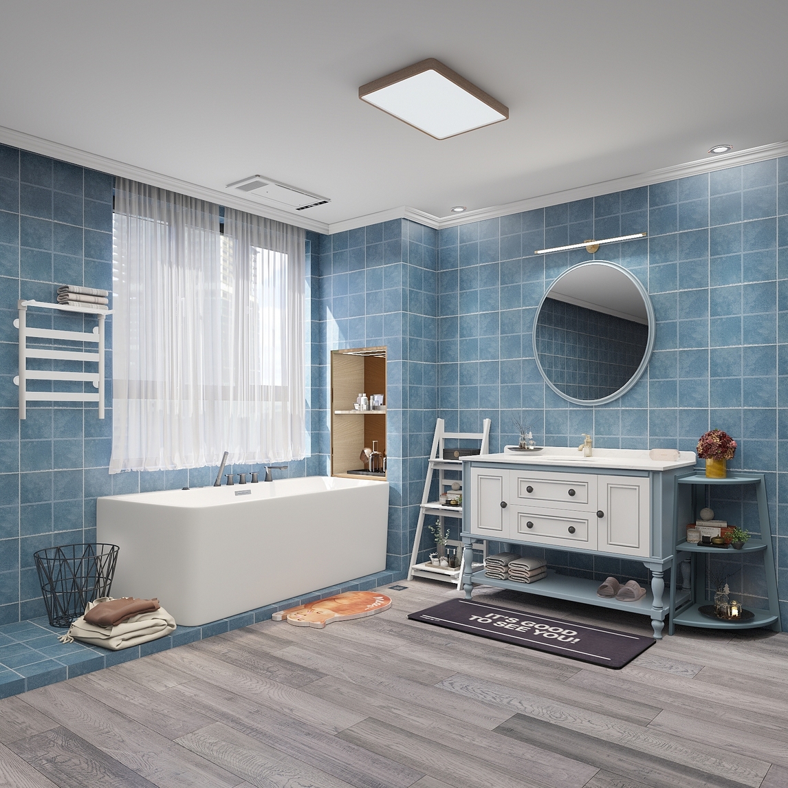 透亮的蓝色,让身心放松的享受沐浴的时光,温暖而不晒人的暖风浴霸,体贴呵护着你的身体,宽大的浴室柜组合放下一切杂物,时尚的可拆卸亚克力浴缸,轻松安装轻松维修。