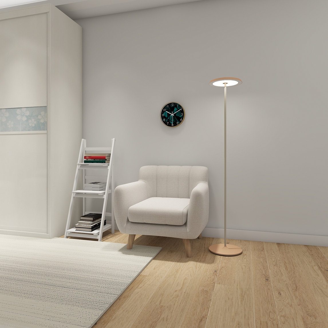 小巧精致的花架也可以用来放置书本,外加上柔软好看的沙发没让整个房间都变得美丽动人,加上个性时尚的落地灯,快来读书吧