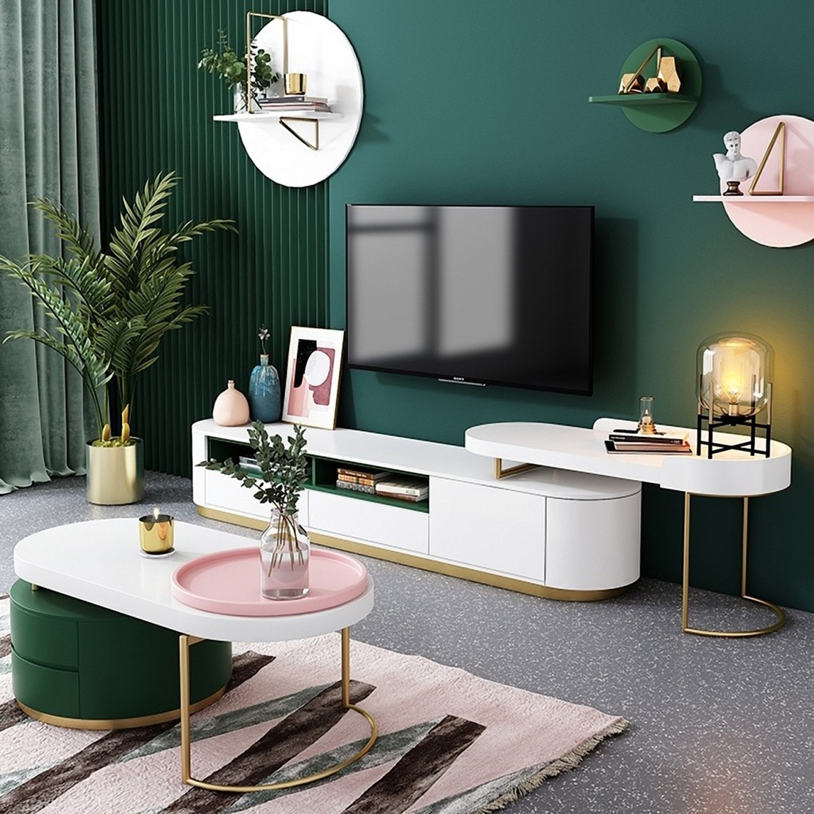 家具部分采用了流行的香槟金+木质,既有北欧风的简约,又有后现代风的小轻奢,多色混搭明度与纯度都恰到好处,让空间在视觉上产生理性的独特韵味。