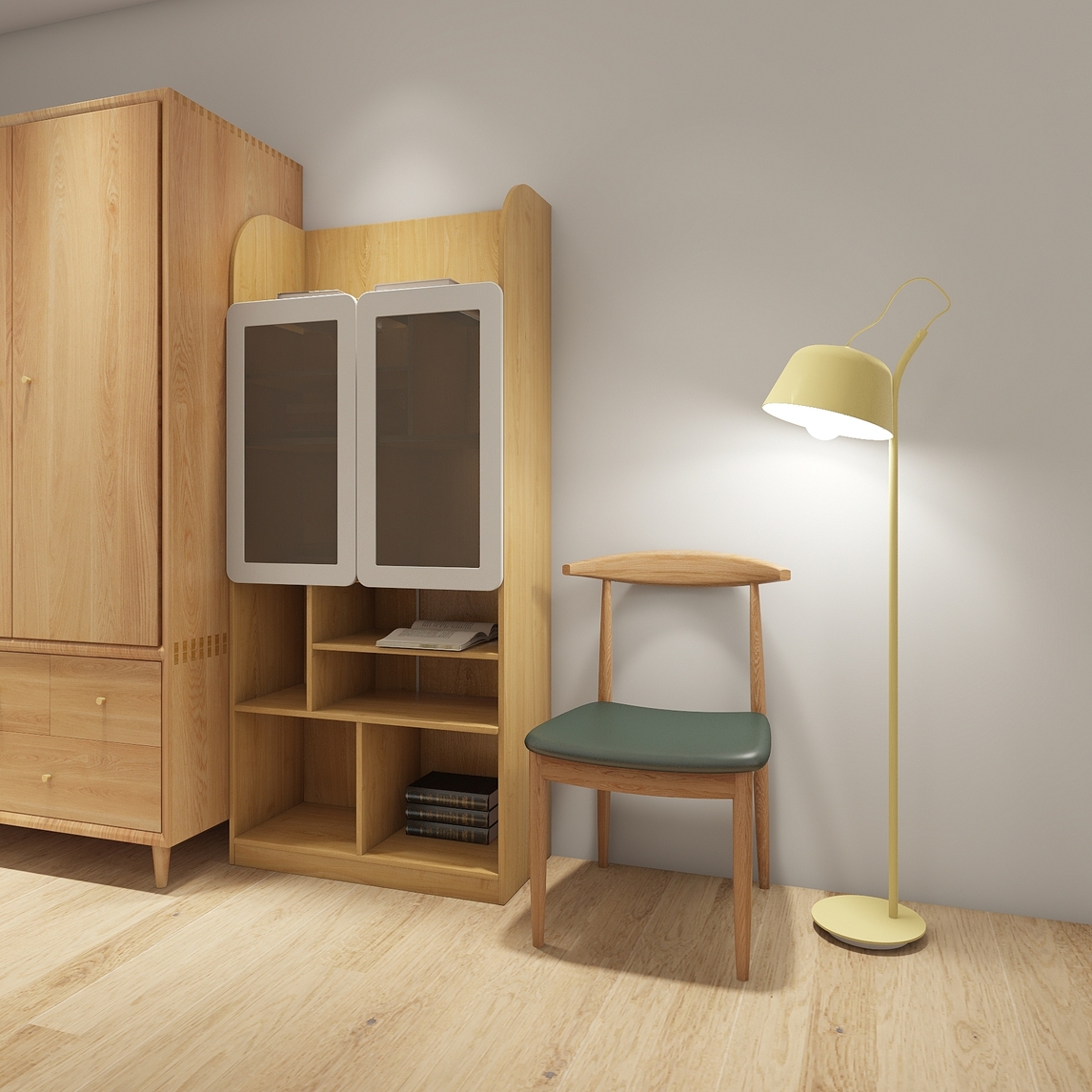舒适的小凳子让你坐上去不会很难受,加上实用经济的书柜,让你充分的可以发挥你的兴趣爱好,好好在这温暖的落地灯下读书