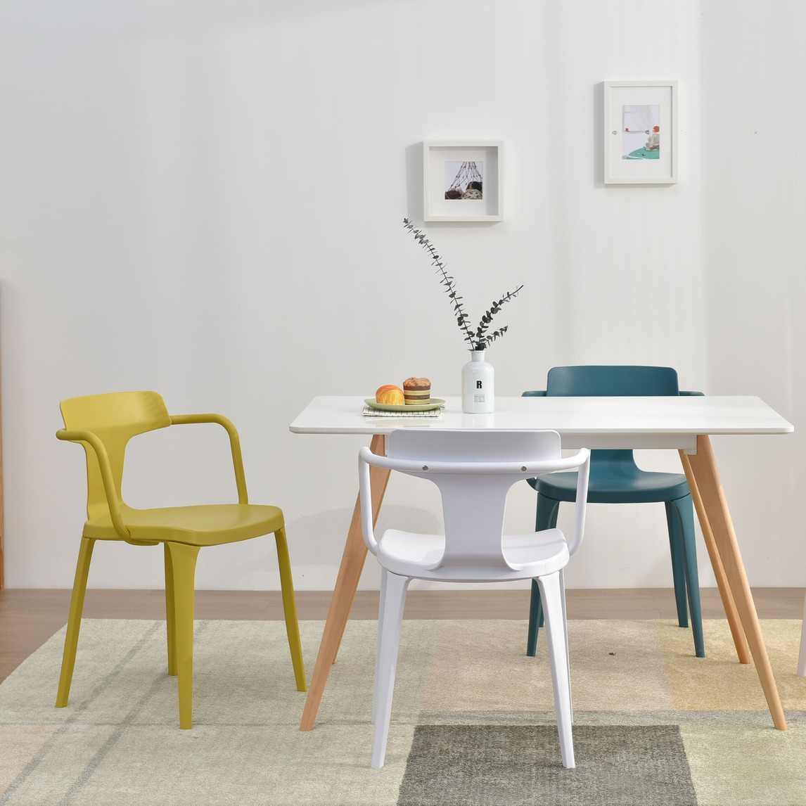 多色的餐椅可以搭配,整体空间颜色更加亮眼。低调的餐桌凸显出餐椅的个性搭配,餐椅室内·室外都可以使用。
