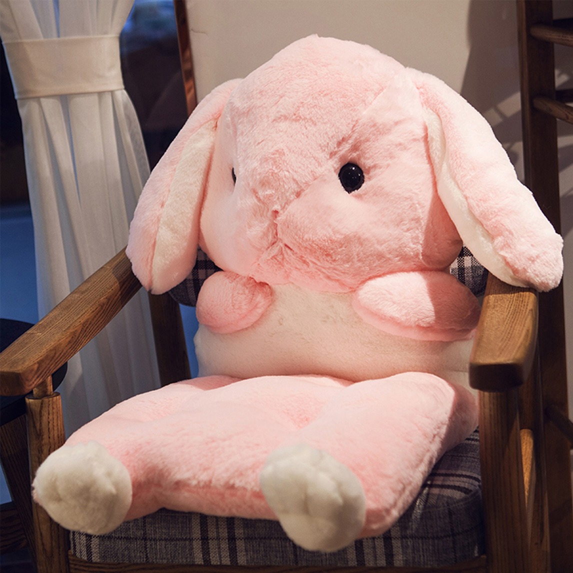 敲可爱的垂耳兔坐垫,连体两用款,让你坐着舒服,靠着也舒服,还可以拆卸哦,方便您不同的使用需求!觉得板凳硬、凉的话,就铺上坐垫吧!