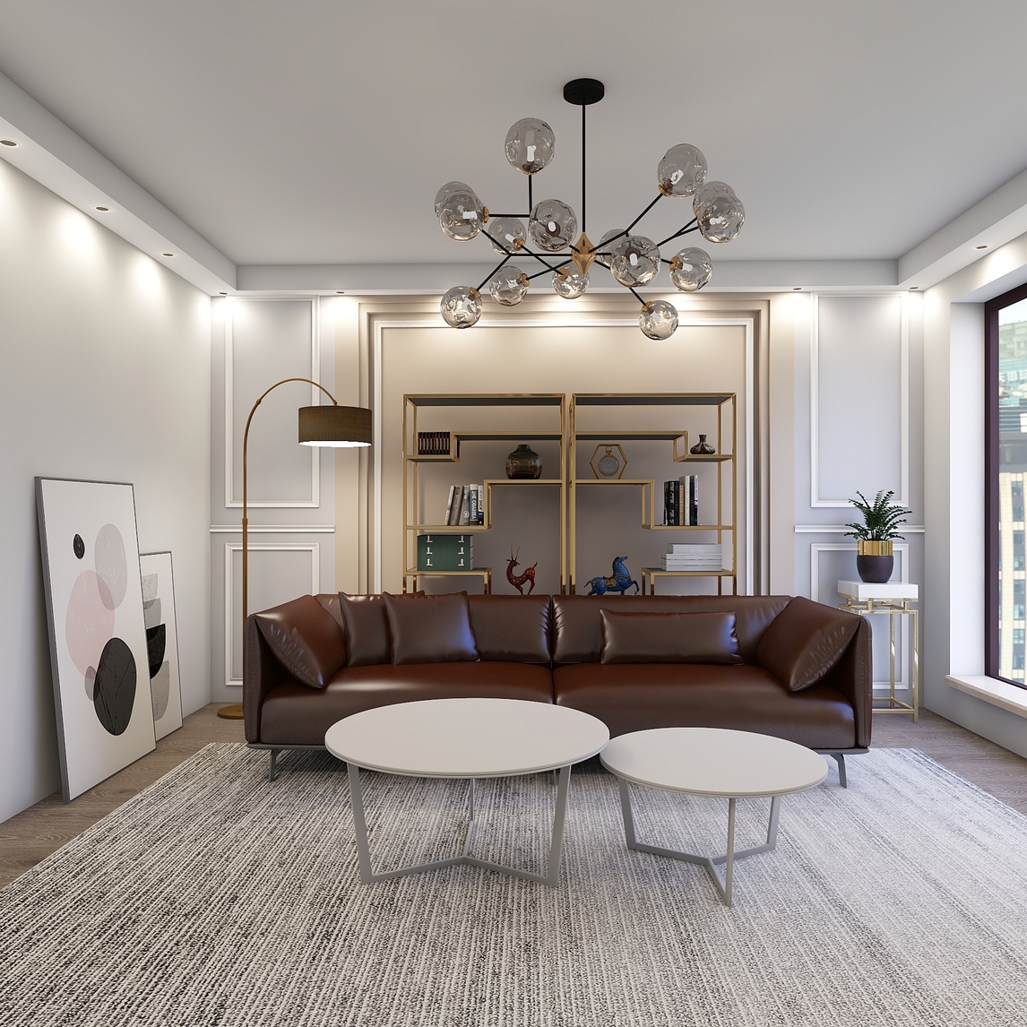 现代轻奢风格中,以简洁的布局为主,有质感的家具为辅,再用少量的黄铜元素加入,从而渲染出一片高级又极具格调的空间,同时正中的皮革沙发,简练的外形以及深沉的色彩让客厅更具大气稳重感,与背后的黄铜书架交织融...展开