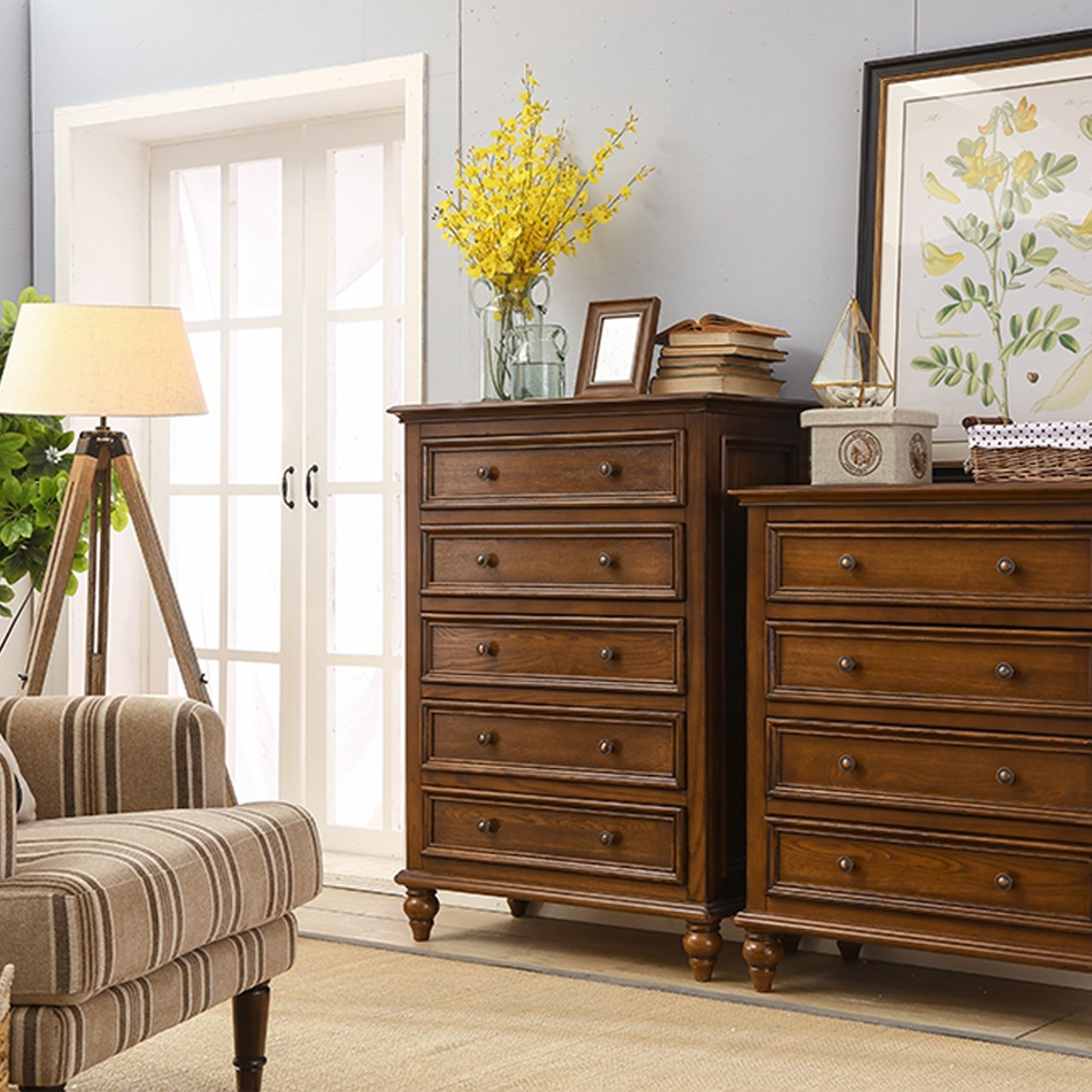 北美进口白蜡木实木添质感,复古做旧的美式风收纳储物柜,抽屉+隔层,玄关柜提供了多维储物空间,柜面也能用于放置饰品,赶走单调沉闷,整洁之余不失个性