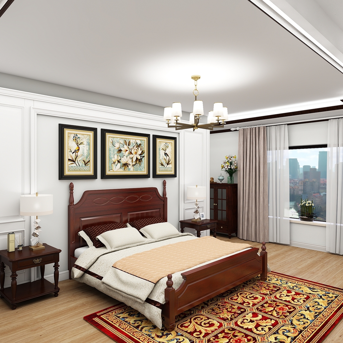 浓浓的美式风格,典雅中又不失大方,美式家具中常见的是新古典风格的家具,这种风格的家具,设计的重点是强调优雅的雕刻和舒适的设计。