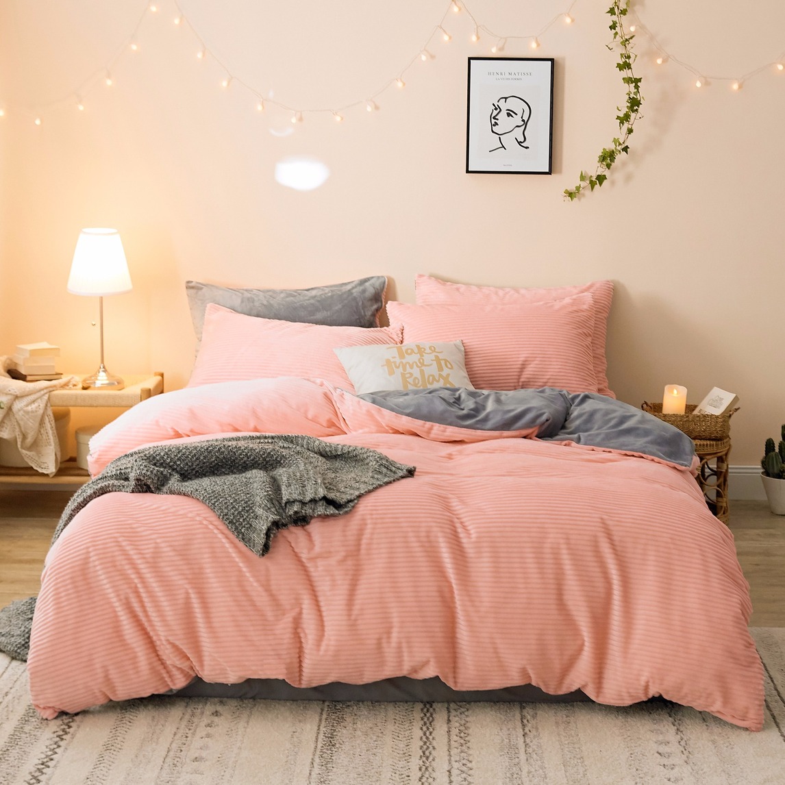 暖色调混搭风格卧室,冬天小秘密:双拼绒四件套,A面魔法绒,如牛奶般顺滑,亲肤透气,B面水晶绒,加厚保暖,贴身即暖;简约卧室床头灯,阅读工作复古黄铜装饰;现代简约墙画,定制世界名画。