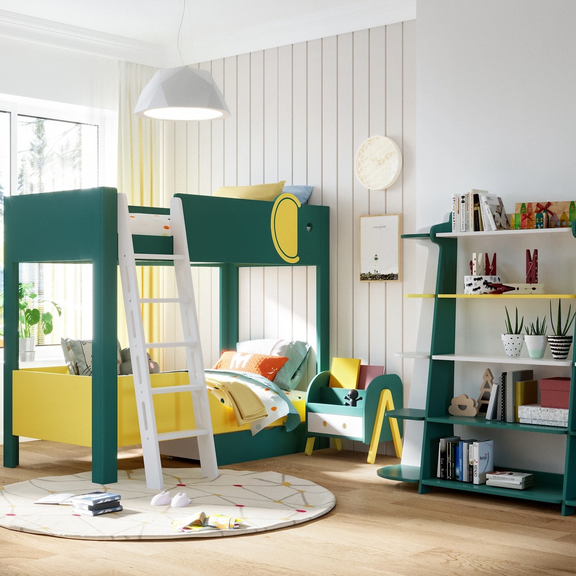 漂亮的儿童房,营造出和孩子们之间的情感空间,亮丽的颜色对刺激儿童的视觉神经非常有好处。白色和绿色相间的配色清新亮眼,可以优先舒缓学习带来的视觉压力。材料环保,家长们再也不用担心孩子们的健康啦!