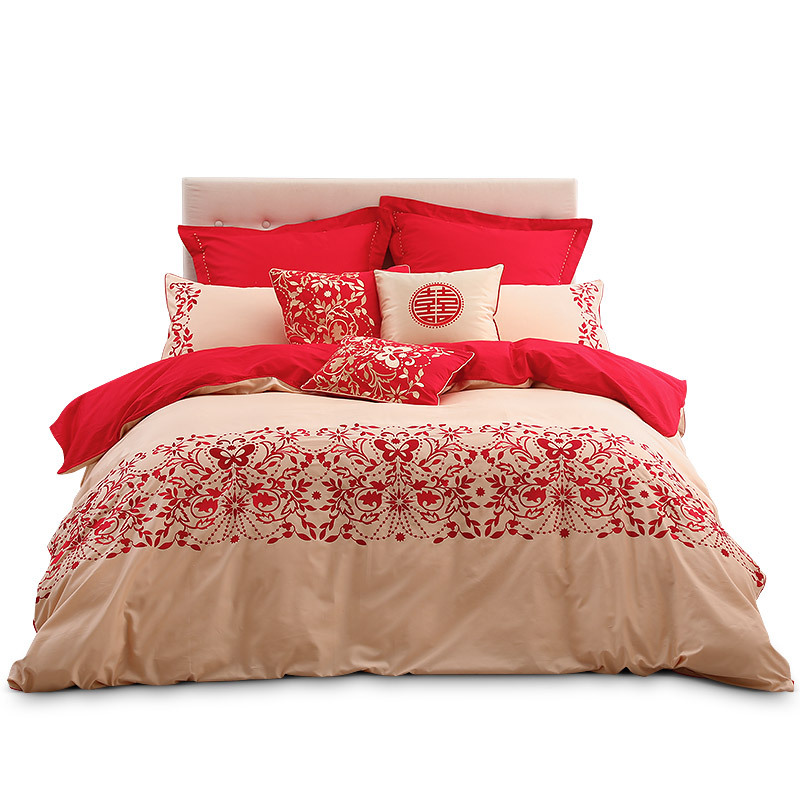 婚姻是女孩子新的开始,带着长辈满满的祝福,到另外一个地方幸福的生活,各种婚庆用品一定要买好的,这款婚庆四件套选用60S贡缎提花面料,典雅大气,自然光泽,配套精美绣花,更显美观,演绎精致时尚典范。