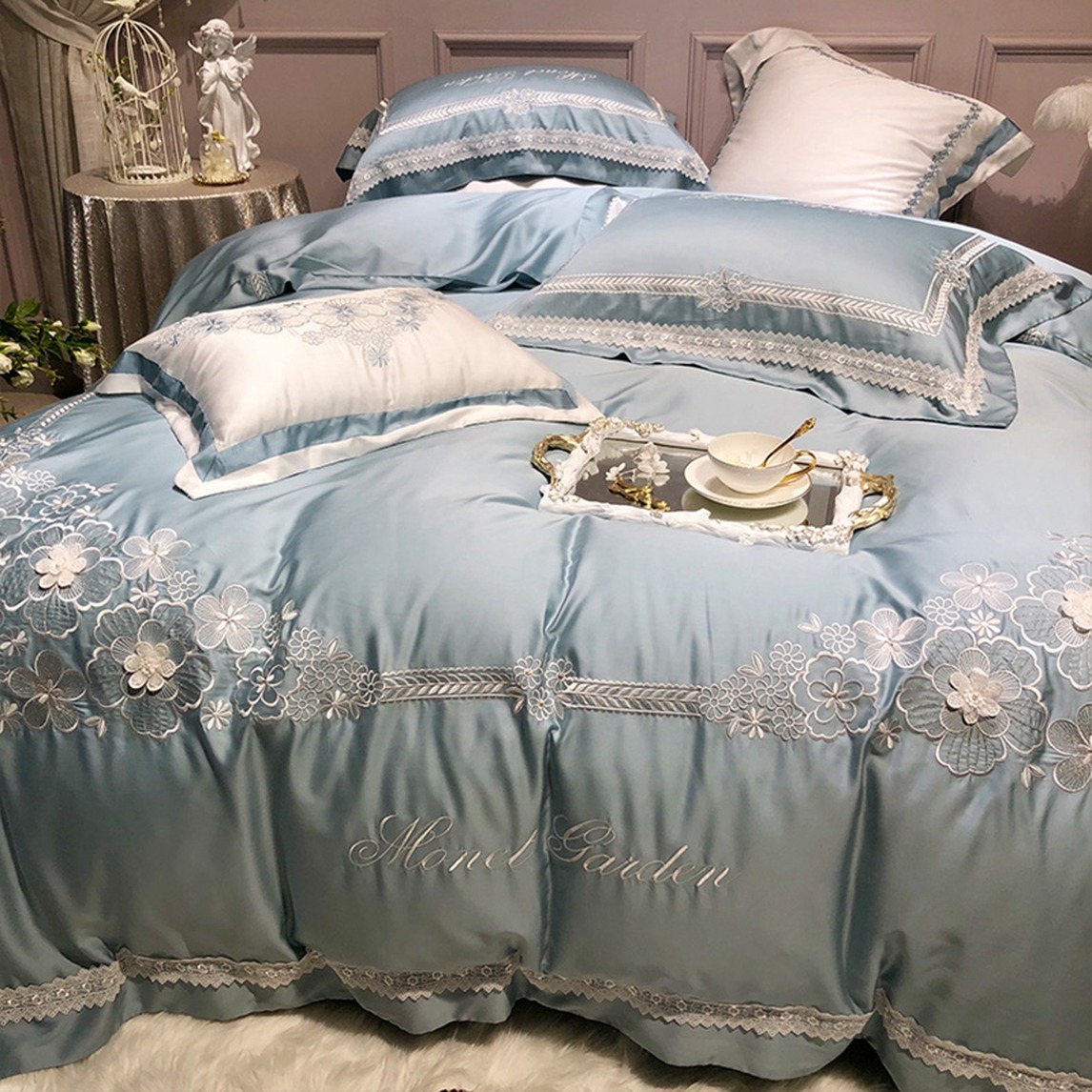 高端双面天丝四件套,采用优雅的蓝色调,搭配上精美的刺绣图案设计,营造出轻奢的欧式风卧室。采用丝滑的天丝面料,触感柔滑。
