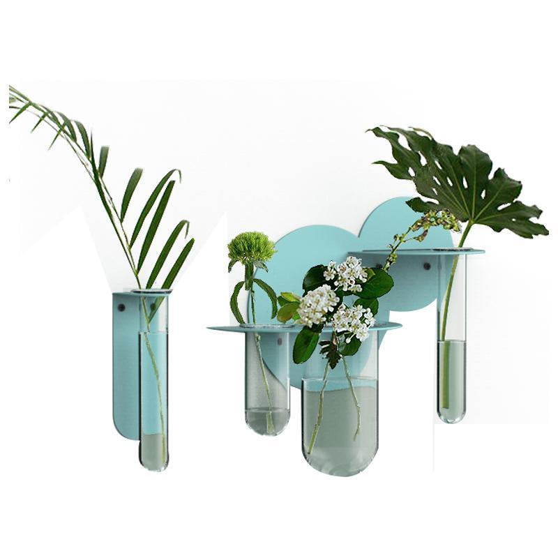同样是绿墙但是面积小 造型优雅的玻璃试管造型 在光影的衬托之下 墙体和绿植融为一体 营造神秘的艺术感
