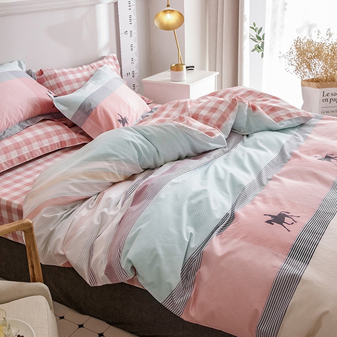 这款四件套不同于平时所见的性冷淡风和条纹风格,在花型的选择上更加的俏皮随意并且十分的清新能够完美驾驭不同年龄层次人群的使用十分的完美好用。而且全棉的面料使用起来也是非常舒适好用的。