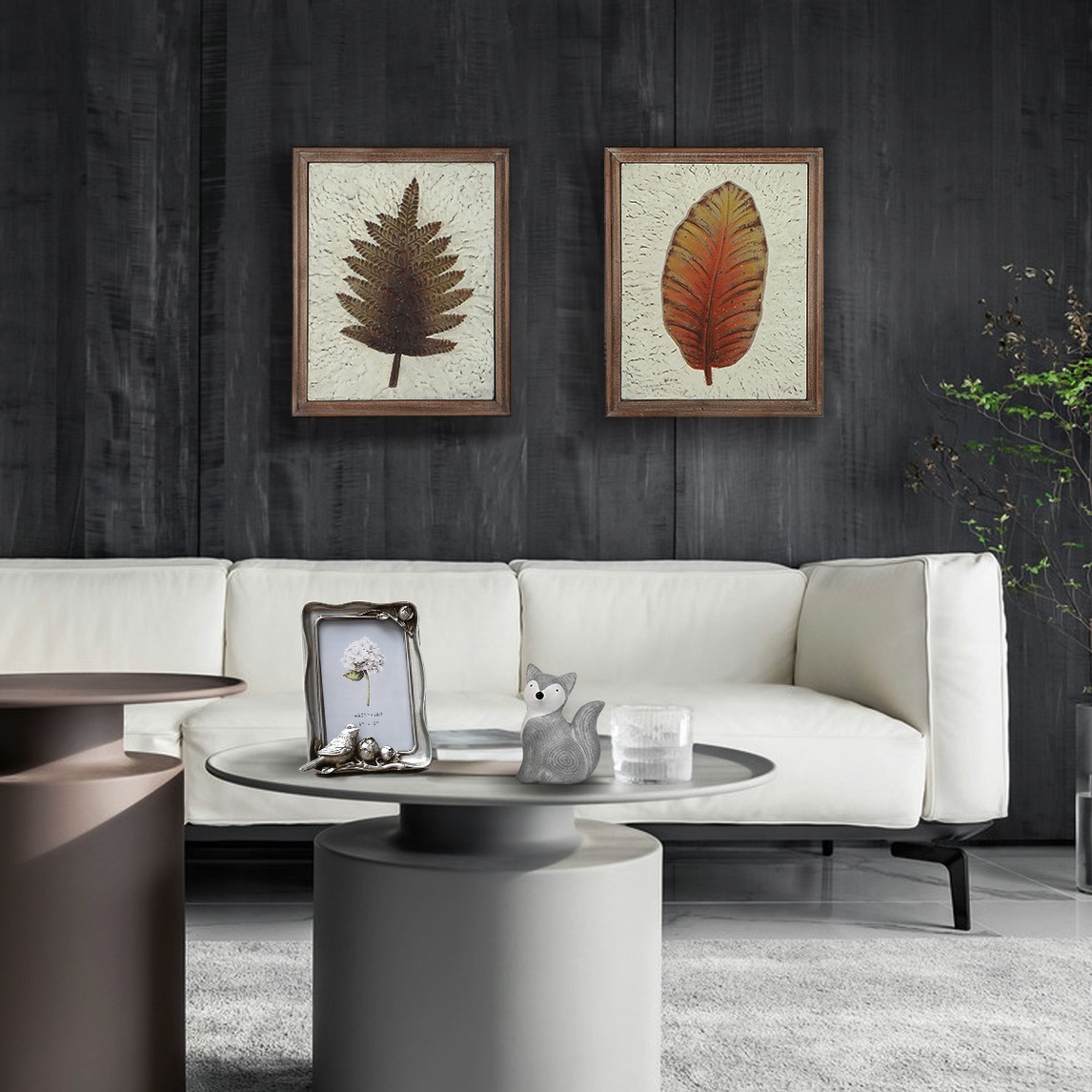 整体空间以灰橘色调为主,低调柔和,温馨而又有力量,植物元素的壁饰给生冷的灰色带来一丝放松、惬意的意境,充满趣味的摆件给整个空间带来生机与活力。