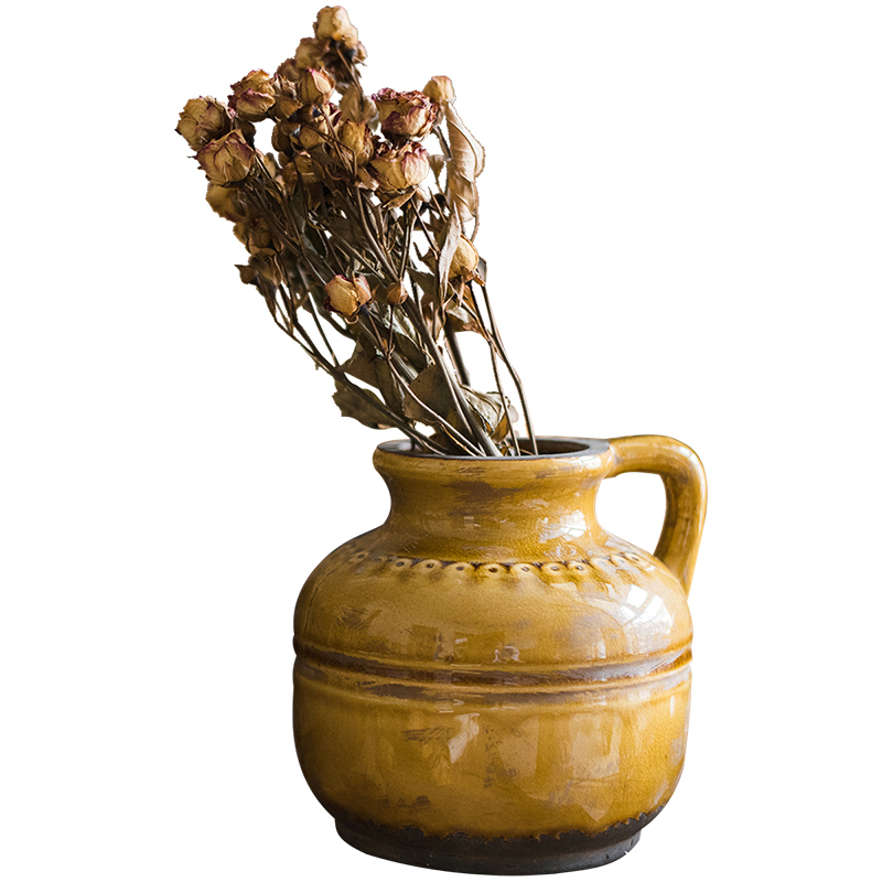 非常喜欢的一款冰裂陶瓷花器,明亮的姜黄色,刻意做旧的斑驳质感,画风很复古,调性很高级,随意搭配,都是和谐的不得了,在阳台、客厅、餐厅皆能随意造景,令人欢喜。