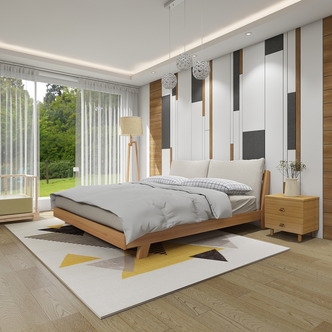 卧室整体设计以现代简约风格为主,搭配日是原木家具,打造出质朴且温馨的生活空间。墙面选用灰、白、木三色装饰板拼接,层次清晰饱满,极具抽现代艺术质感。实木床遵循极致简约理念,舍弃一切细节装饰,呈现出最纯粹...展开