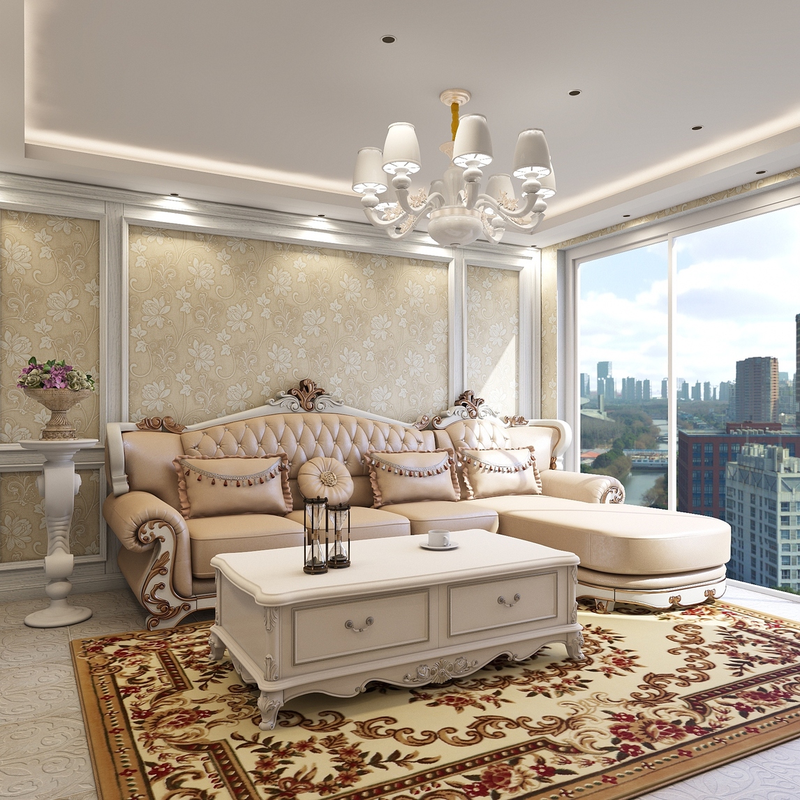 空间使用了柔情的欧式风格来作为装点,带有暖意的色调让整个空间呈现出家居生活的温馨感,而沙发其上方柔美的线条与精致的雕花图案增加了整体的设计感,使得客厅更显出华丽与典雅氛围,让人在无形之中就能感受到其中...展开