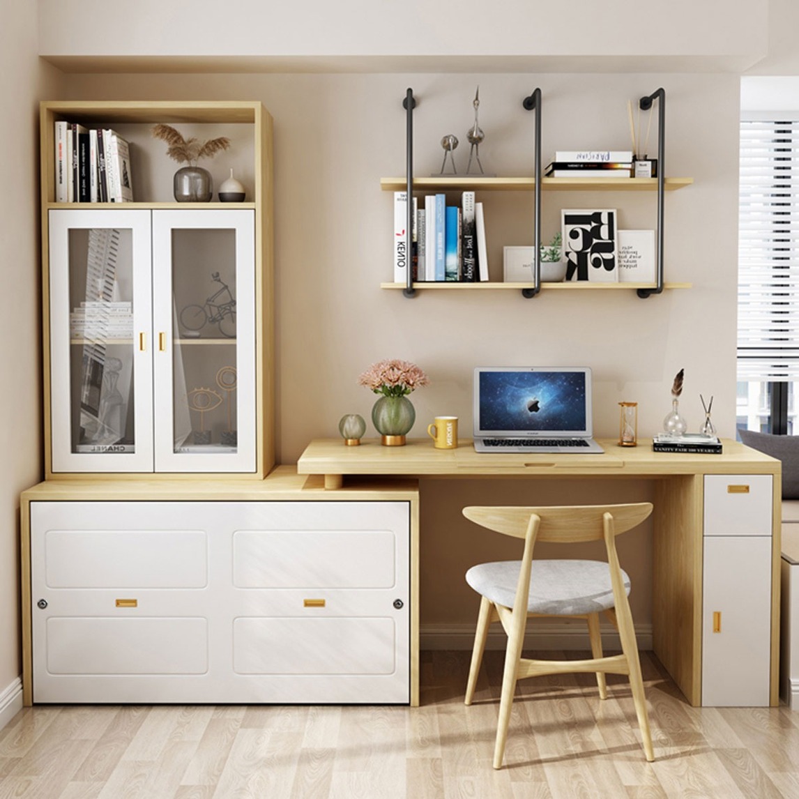 沙发给自己搭配这样的书桌,简直是太棒啦,利用小小的空间,堆积式的收纳形式,小书房也能实现大容量的收纳,搭配墙上隔板的书架,简直太棒啦,稳定性超级让人放心的啦,赶紧搭配起来~