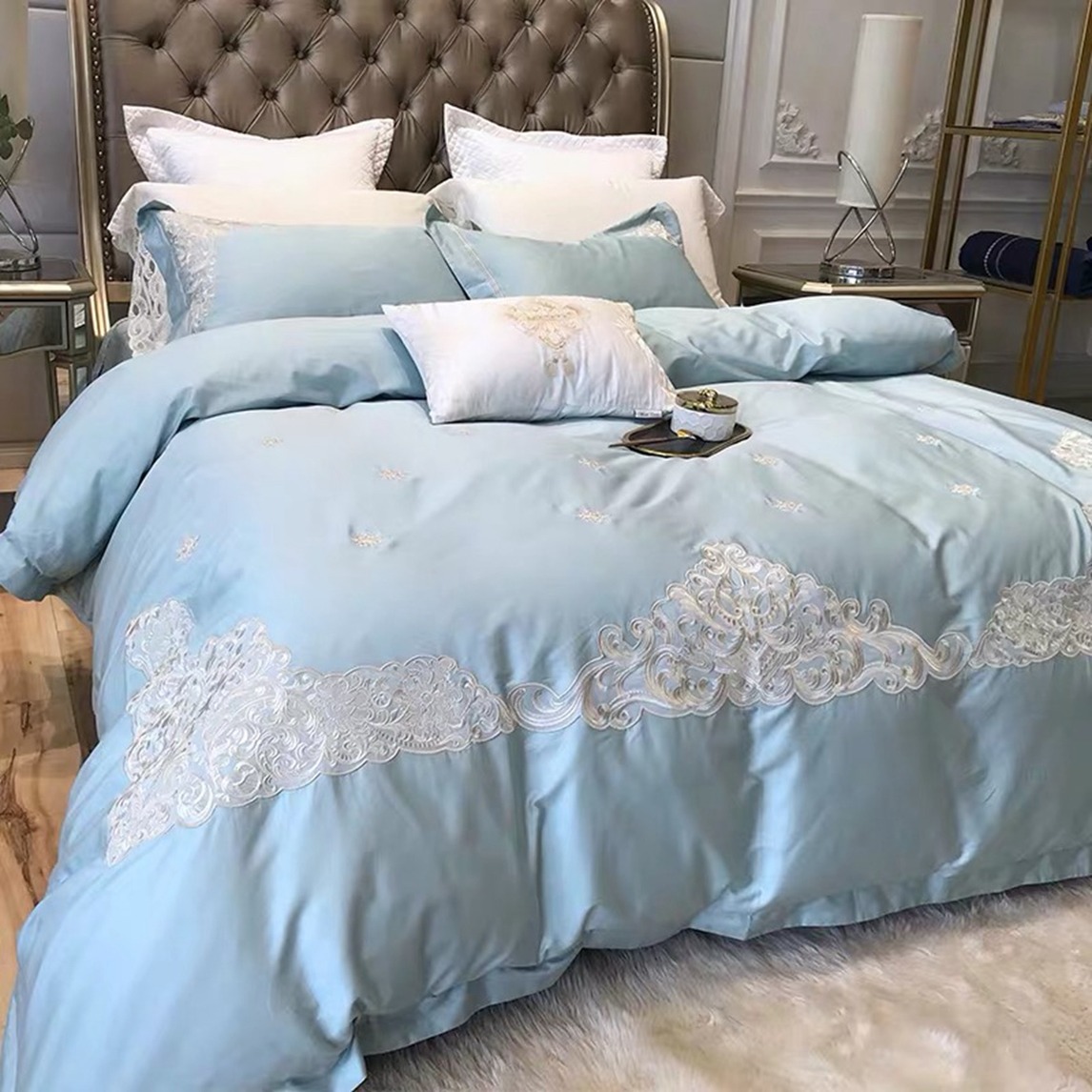 全棉欧式四件套,采用安静的蓝色主色调,营造出安静的卧室氛围,有助于睡眠。精美的刺绣图案设计,提升了卧室的时尚感。