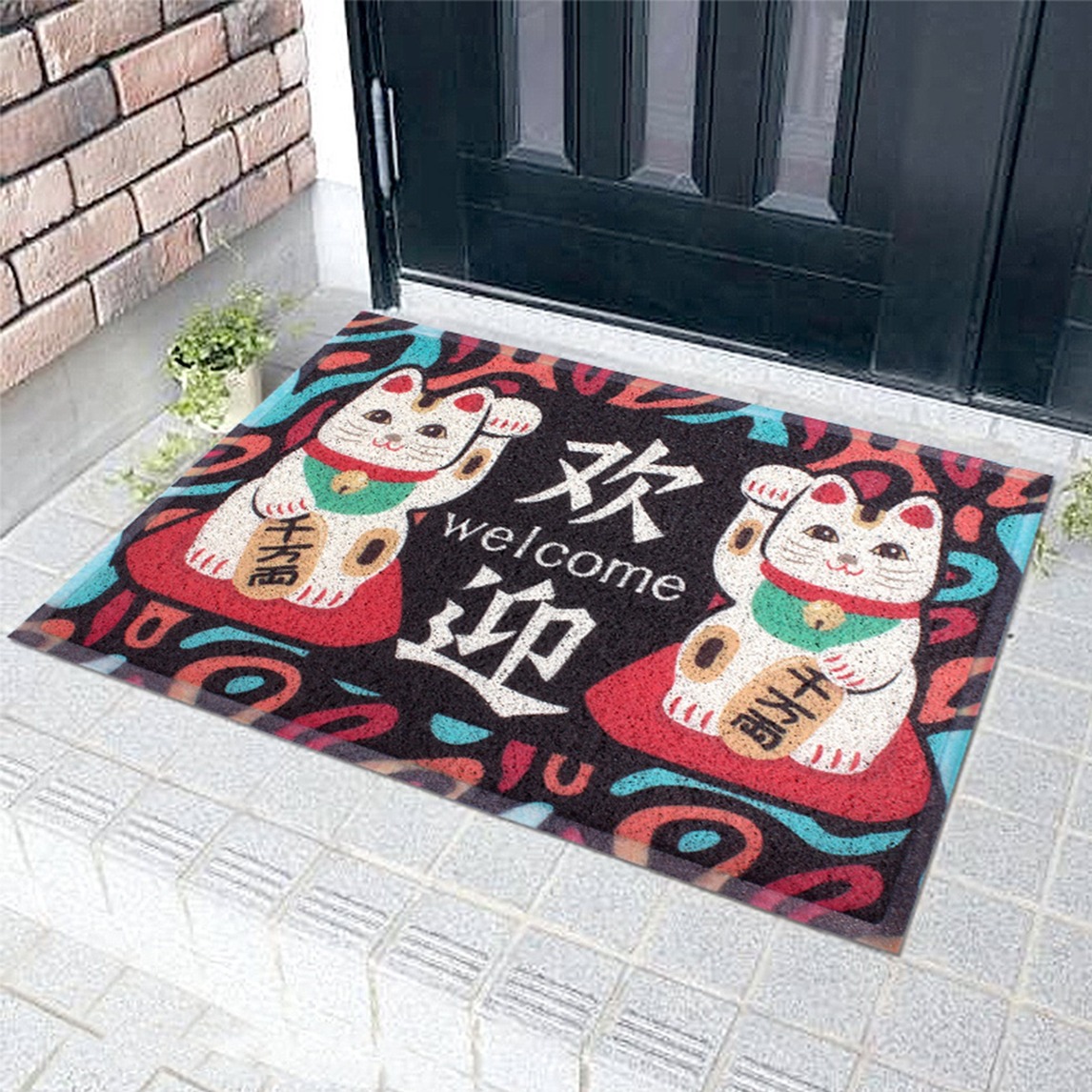 可爱招财猫地垫,招财纳福,美化家居。加密丝圈+防滑底背,高弹柔软,除沙防滑,耐磨耐脏,清洗方便,使用更长久。