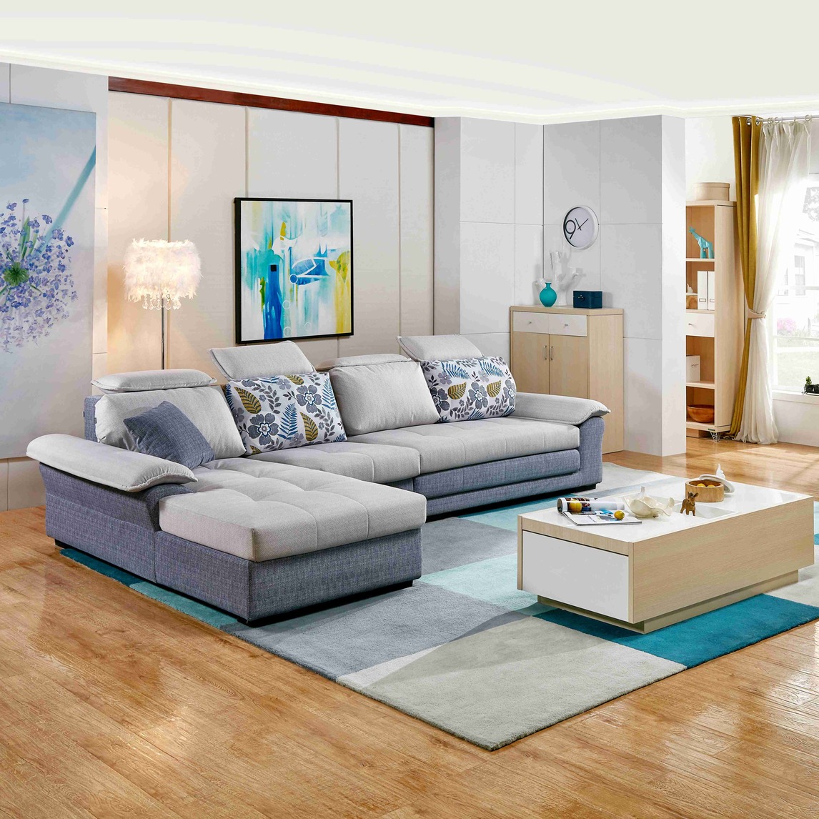 浅灰蓝布艺沙发,有着与女主人温柔气质相符的相貌。这娇憨的外表,甚至会容易让你忽略掉它极强的既能“变身为床”又能“大容量储物”的实用内涵。