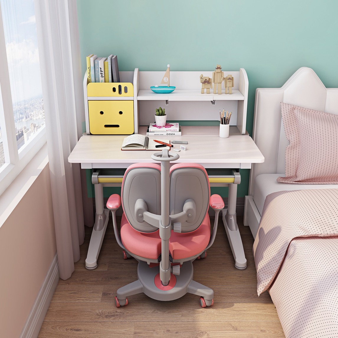 90公分宽学习桌,小户型专属,一平米就能装下学习梦想。专业的学习椅,纠正坐姿,协助养成良好的学习习惯。桌椅可升降,刻度一目了然,轻松调节,匹配不同身高。