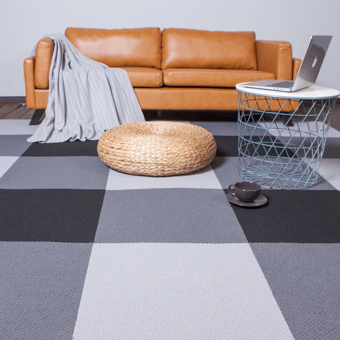 小面积公寓,客厅既要能会客,也有能承担起休闲放松的功能。 选择焦糖色的皮面沙发,休闲气质十足。 小小的茶几不占地方又实用,再摆上日式蒲团,感觉就出来了。 地毯当然必不可少,选择拼接式的地毯,可以铺出自...展开