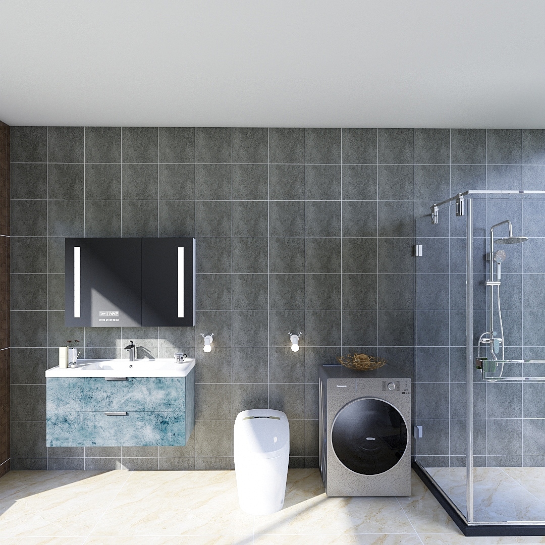 洗手间太小也不是,太大更显得空荡荡。将洗手台、洗衣机、淋浴房、马桶放在一个空间里,搭配不同颜色就提现出层次感啦!