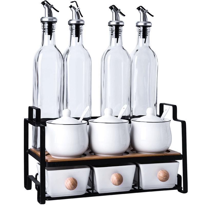 这款厨房调味品套装堪称是小厨房的收纳神器,能瞬间让台面变得整洁。采用双层设计,搭配有油瓶和调味罐,轻松收纳各类调味品的同时,也更能节省厨台空间。