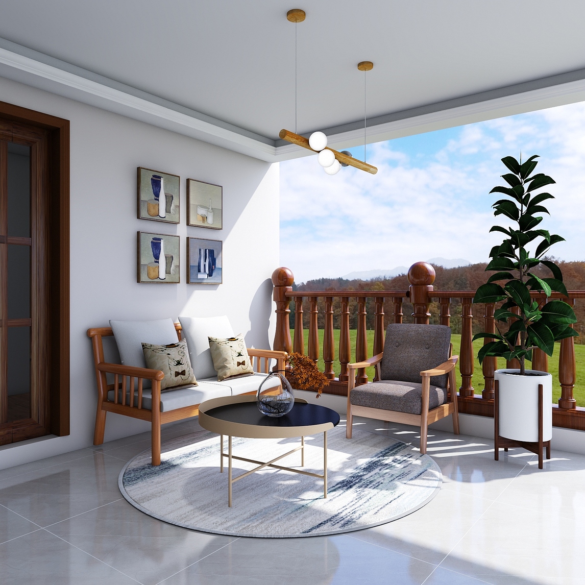 混搭风格的阳台以浅色调来设计空间,尽显简洁大方美感,而以建筑元素与木材来设计的护栏,在具有经典美式韵味的同时流露出几分清新气息,同时加上原木制作的简约休闲椅来陪衬空间,更有些许素雅日式韵味,再辅以花艺...展开