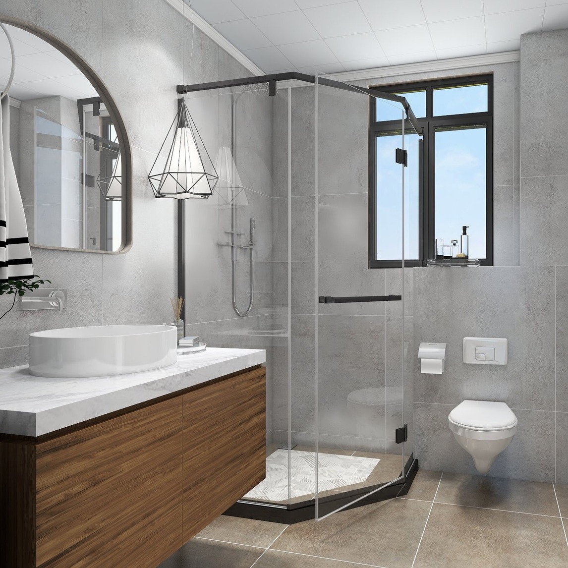 清新简约的装饰,色调饱和度低,却给人赶紧利落的视觉美感,复古的圆镜和洗漱台搭配,时尚又经典,雅黑系的淋浴房成为了耀眼的主角,整体散发着浓浓的INS风,开启着浴室新潮流。