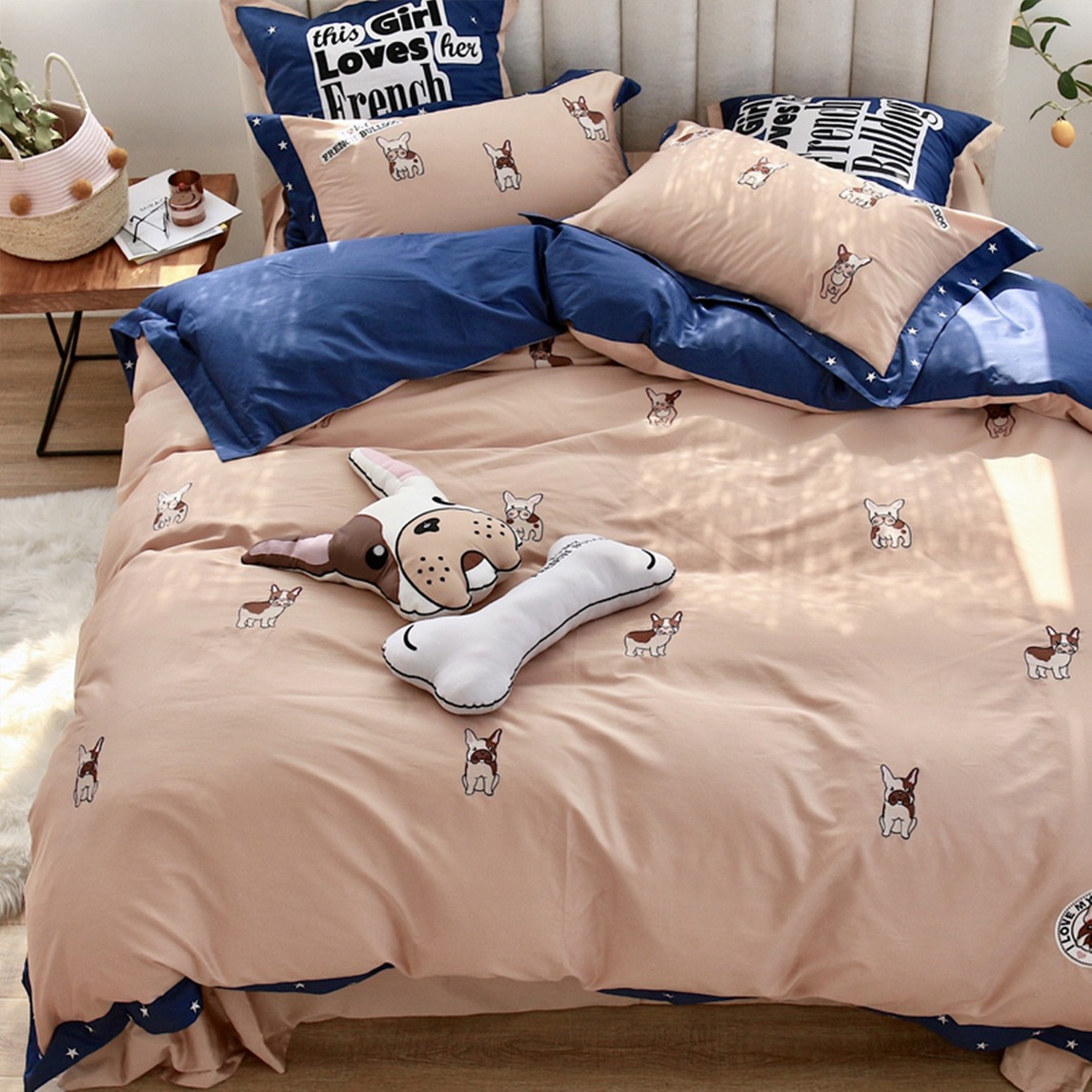 床品上的卡通狗狗图案造型可爱,充满童趣,深受男孩子们的喜爱。面料更是使用60支埃及长绒棉制作而成,带来更加舒适的睡眠享受。