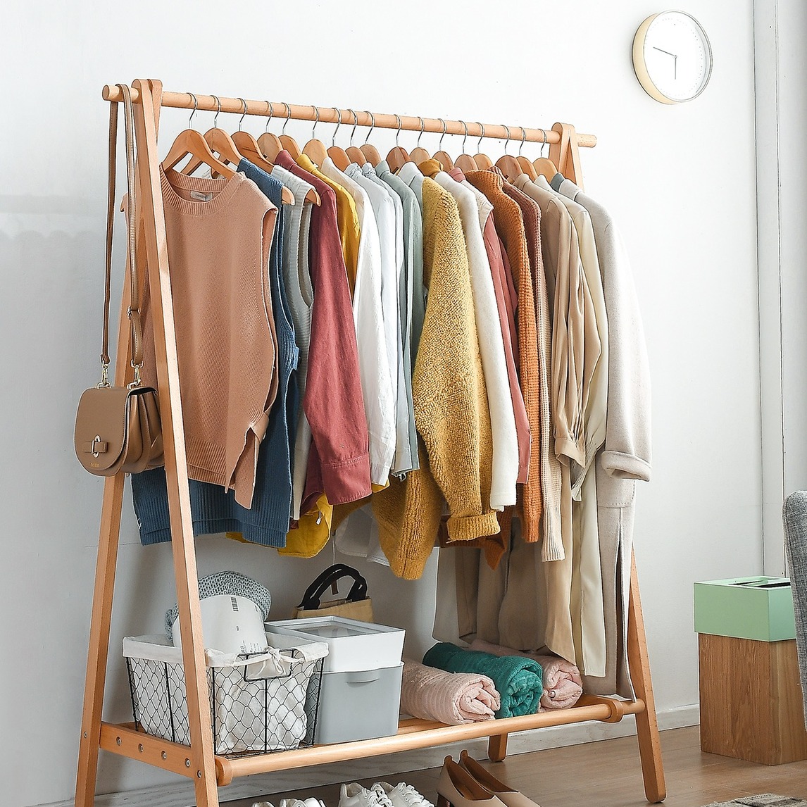 这是一款简约风格的实木衣帽架,顶部30cm的加粗横杆,冬天用来挂大衣、挂羽绒服和重一点的衣服都可以。两端的设计可以用来挂裤子或者帽子。在衣帽架的下面是一个可以自由拆卸的衣篓,如果有脏衣物换下来又来不及...展开