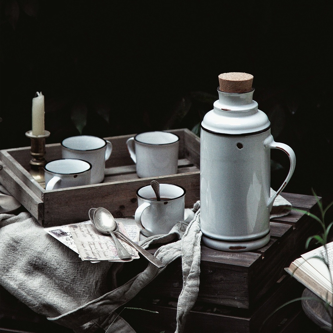 小时候总是有这么一个搪瓷杯,有时候它是水杯,有时候用来刷牙,更多的时候是挂在背包的角落晃荡晃荡的过完童年的夏天。搪瓷杯是上世纪水杯的代名词,这套仿搪瓷杯壶保留了搪瓷的原味,更注重做旧的艺术性。