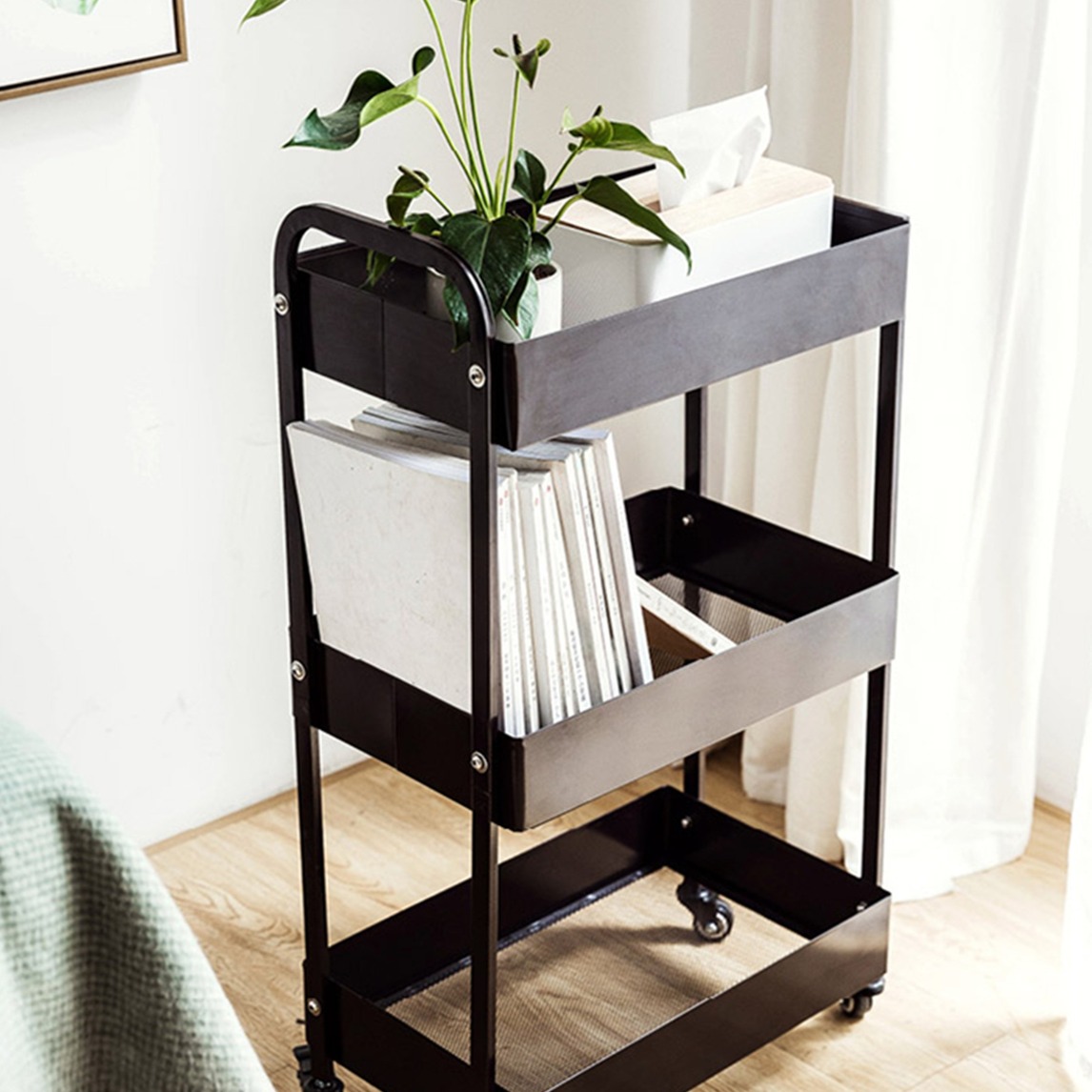 黑色的架体适合多种风格的客厅使用,置物架带有移动滚轮设计,使用功能更加多样,可以根据使用需要移动位置。