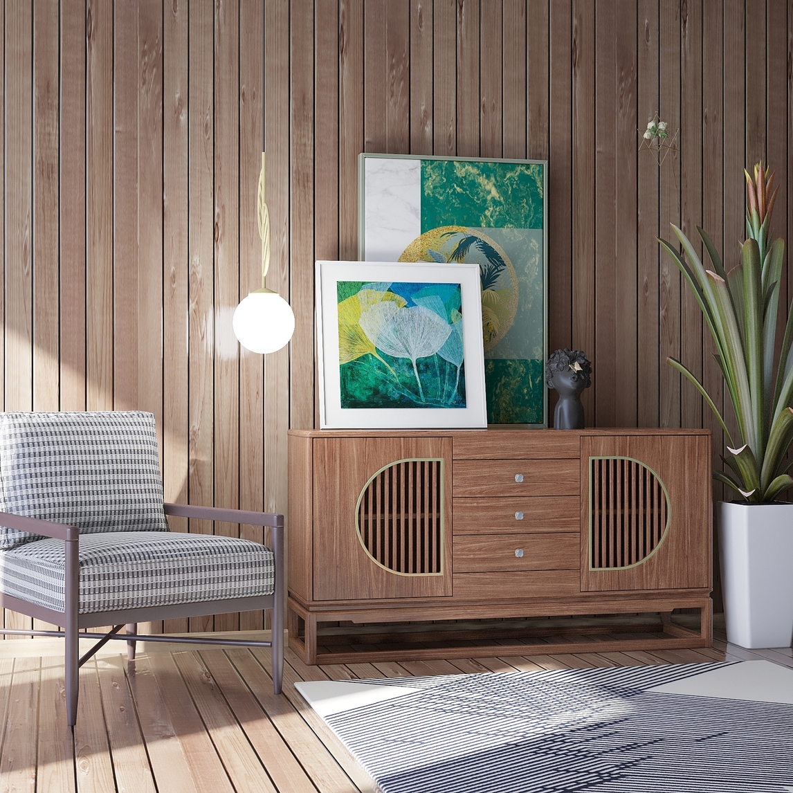 木色是所有人都喜欢的颜色,整个门厅空间都用木板构成,木质沙发椅可坐着穿换鞋。原木鞋柜那么清新自然。配以绿色植物,植物摆画点亮整个空间色彩。让人一进门森林气息扑面而来