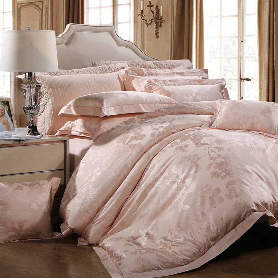 以欧式花朵为主体,通过提花工艺交织而成,光泽莹润,花型饱满,展露艺术之美!双重面料,双面享受,被面,华美欧式提花,柔滑立体,尽显艺术之美,北里,素净简约纯色,亲肤透气贴身,裸睡超舒服哦。