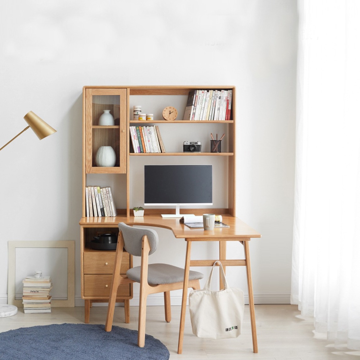 想要在家里打造一个清新的书房,只需要一个转角就可以了,因为有这张实木的转角书桌,还有组合书柜,使用起来是很方便的。